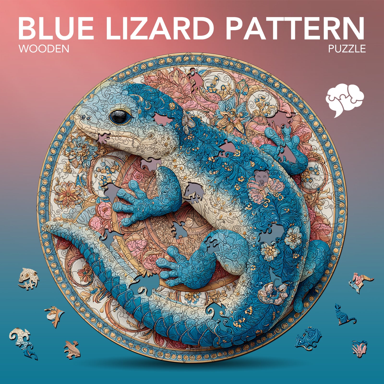 Blue Lizard Pattern Wooden Jigsaw Puzzle